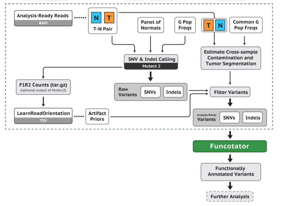 Normal이 없을땐 Tumor와 PON만으로 tumor only mode(mutect2 한정)를 진행한다. 이렇게 되면 germ line variants가 포함될수도 있지만 VAF 필터링으로 걸러질 수도 있다. 부정확해서 추천 안함.