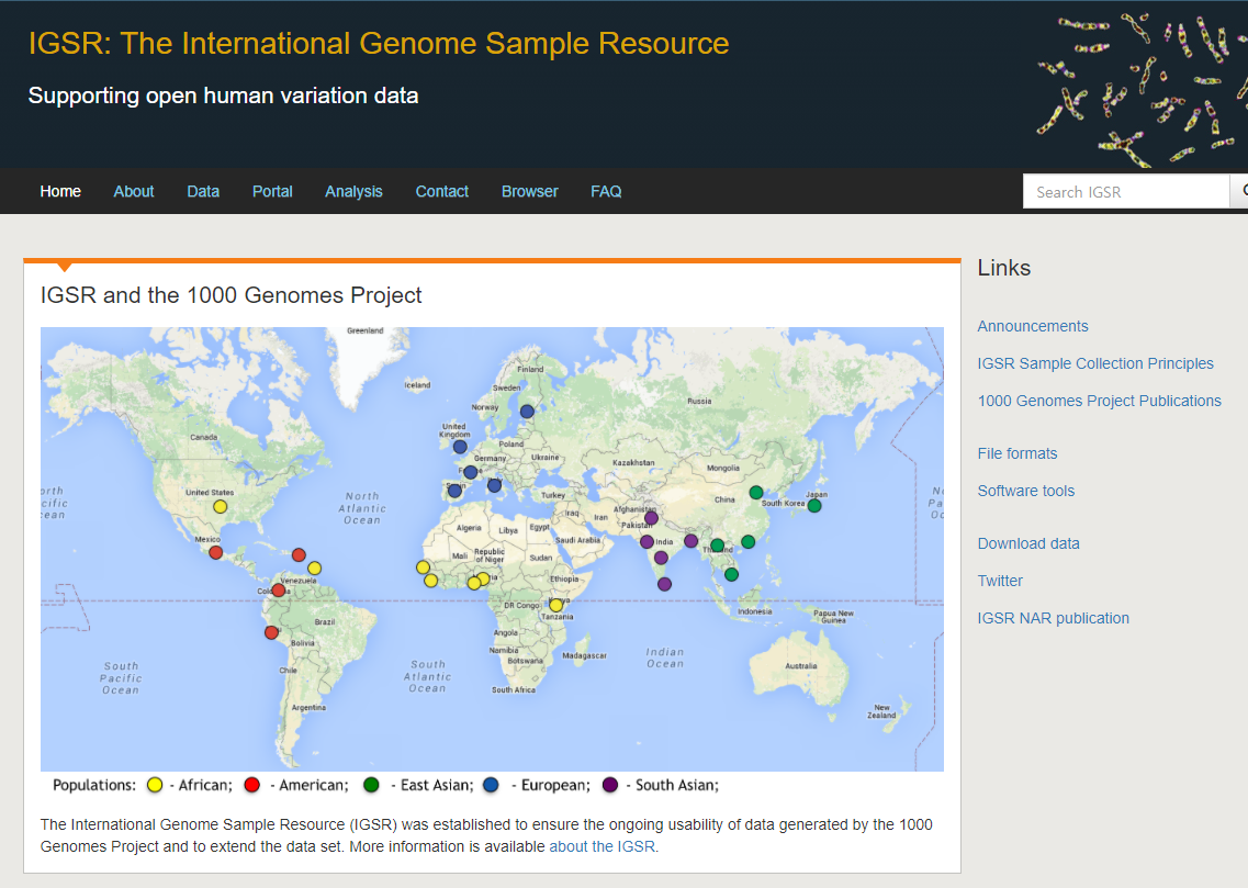 5개의 인종과 26개의 아인종으로 구분된 2504명의 유전체 염기서열을 공개,