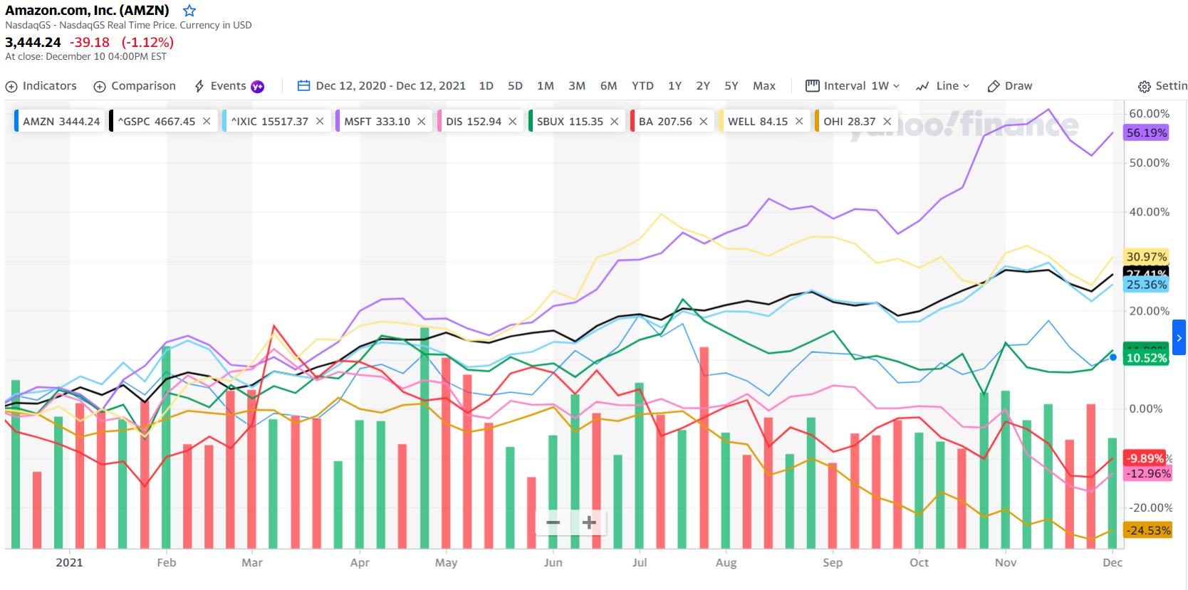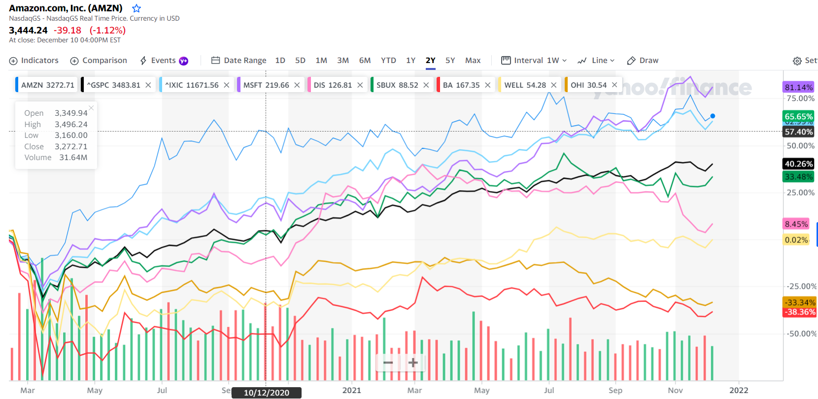 아마존이 2020년도에 폭풍 오르고, 2021년에는 조금 주춤 했던걸 확인 할 수 있다.