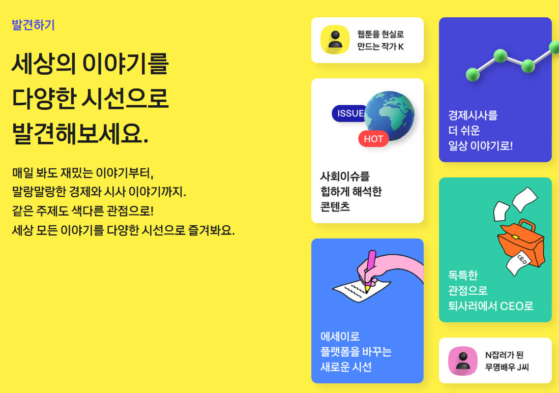 내가 콘텐츠를 만드는것 뿐만아니라 에디터로써 다양한 콘텐츠를 큐레이팅할 수있는 플랫폼이다.